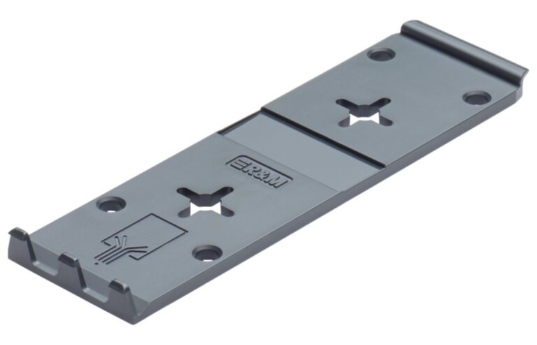 Mounting plate to be mounted on different surfaces such as in raised floors, walls, cable pathways and furnitures. To click on GOP-Boxes.