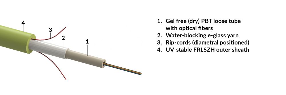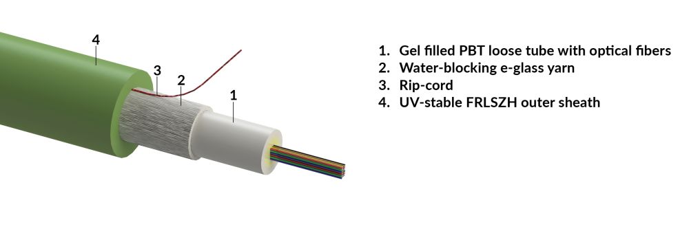 Central loose tube, single sheathed cable, iRP-increased rodent protected, universal-use, UV.FRLSZH sheath - green, Dca, 01 x 24 fibers OM5 (R859105)
