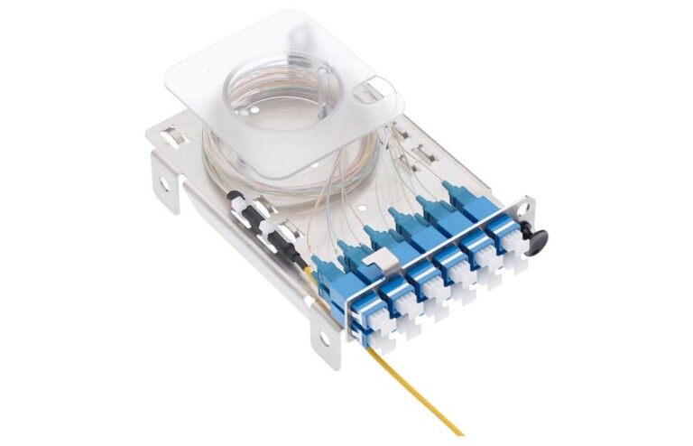 Complete patch insert, populated with adapters and system pigtails. For mounting into Venus Boxes FLA2 or FXL, providing storage room for loop installations or patch cords.