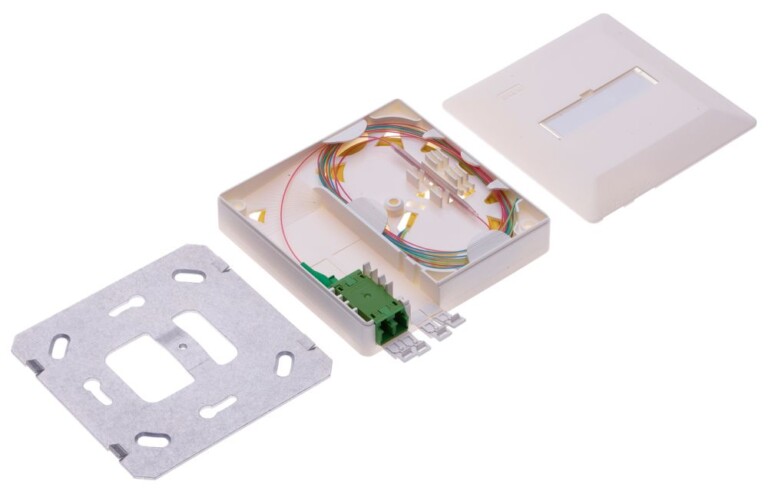 Ready for splicing with 1 LC-Duplex adapter (with integrated self-closing metal laser protection flaps), 1 LC pigtail (600 µm fibers) included.